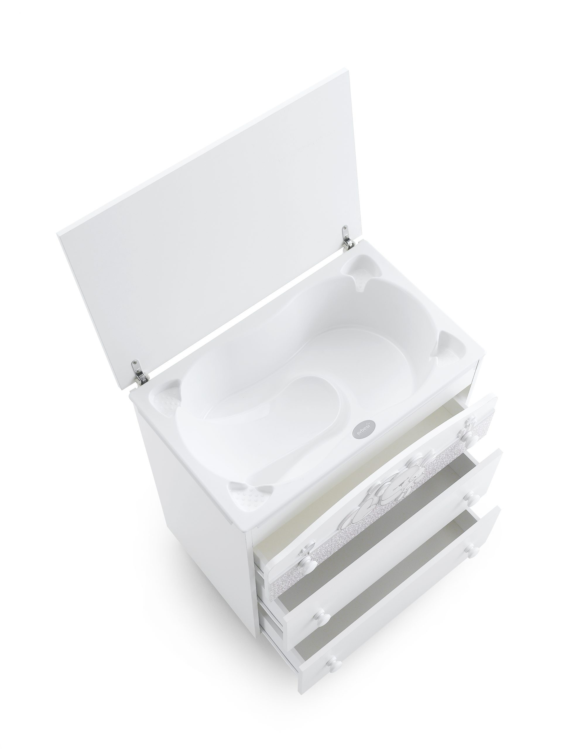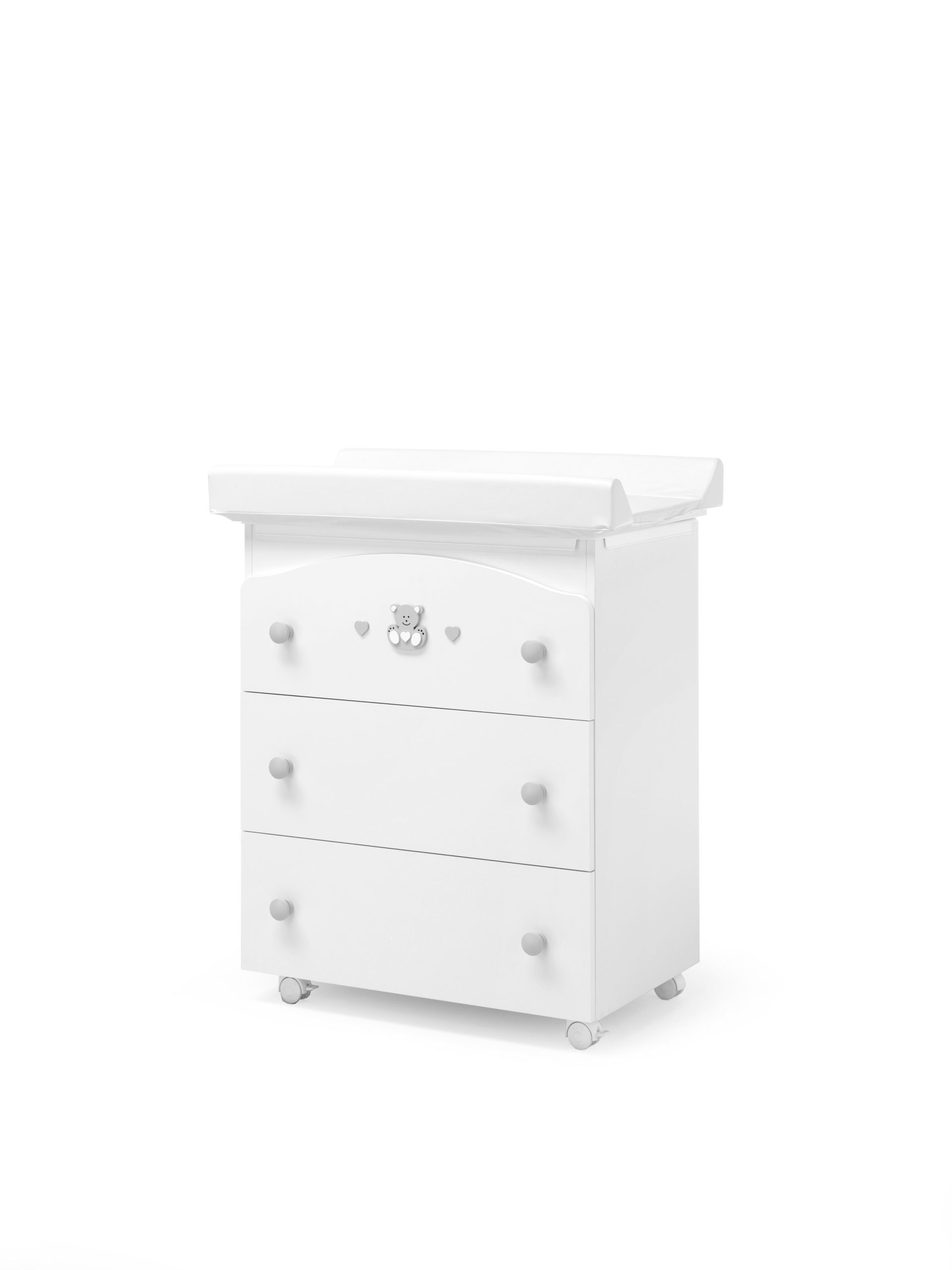 Praktická komoda Charly je vybavená přebalovacím pultem, který je velmi praktickým kouskem při zařizování dětského pokoje pro novorozené miminko. Výrazně ulehčuje manipulaci s děťátkem při přebalování. Pod podložkou se nachází vanička.