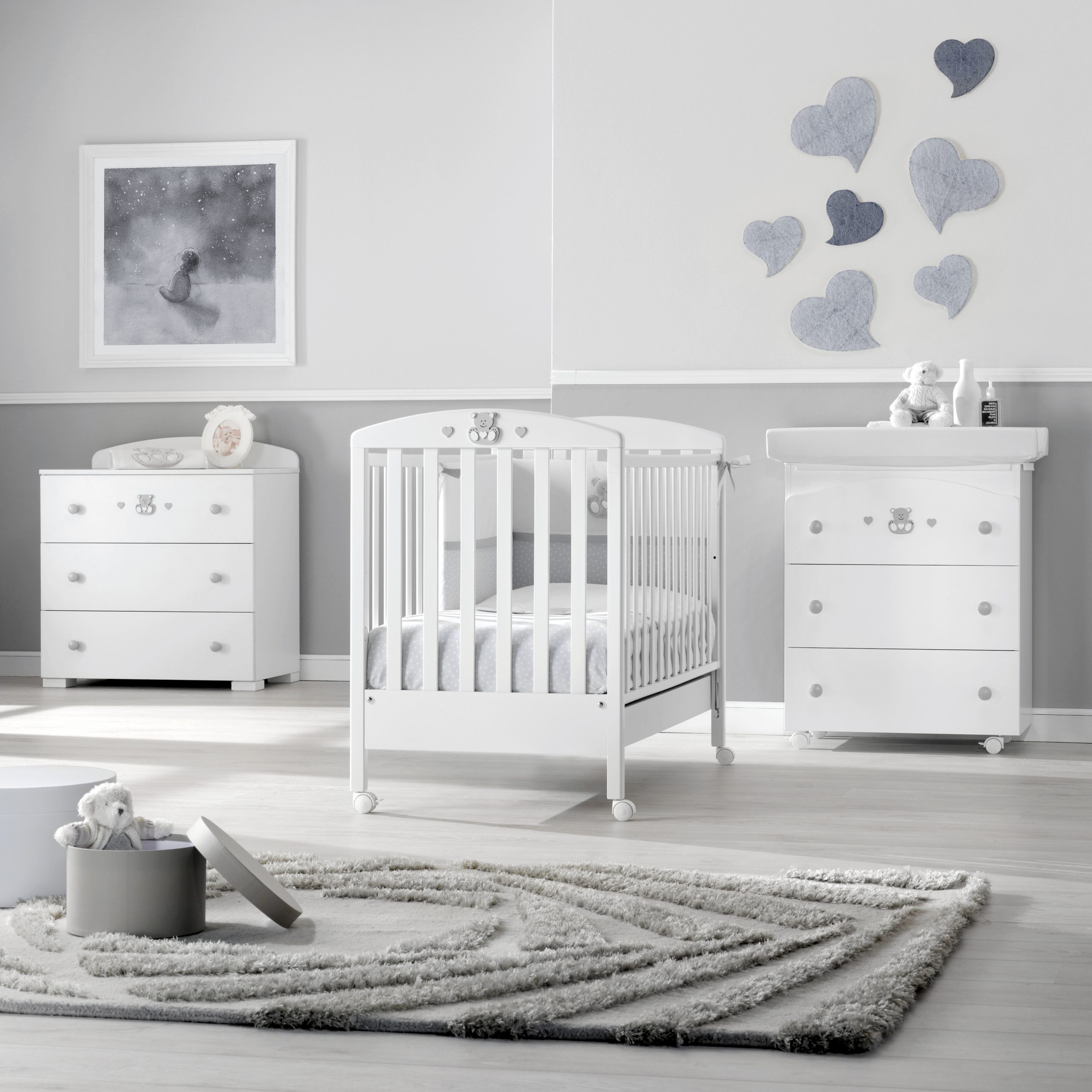 Komoda Charly – 3v1 bílá/šedá