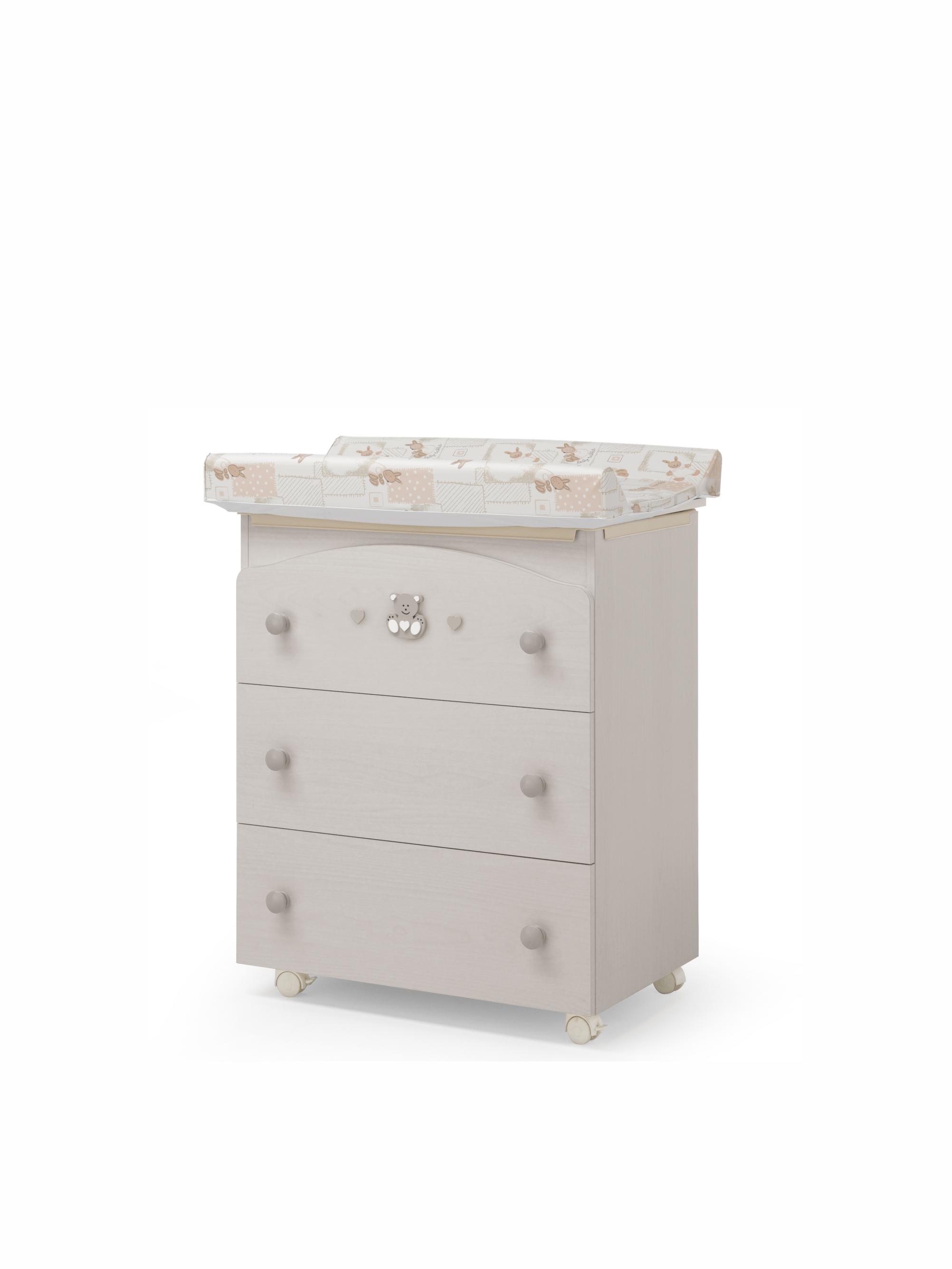 Praktická komoda Charly je vybavená přebalovacím pultem, který je velmi praktickým kouskem při zařizování dětského pokoje pro novorozené miminko. Výrazně ulehčuje manipulaci s děťátkem při přebalování. Pod podložkou se nachází vanička.