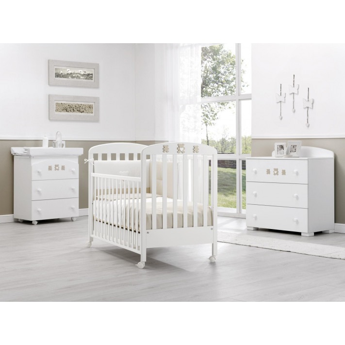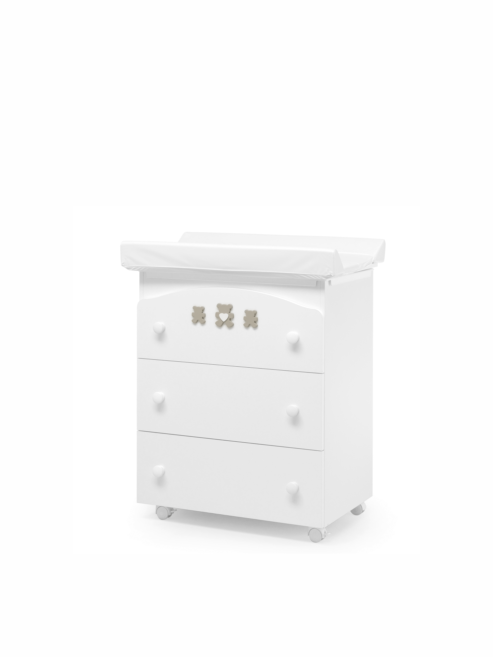 Komoda Molly je vybavená přebalovacím pultem, který je velmi praktickým kusem zařízení dětského pokoje pro novorozence. Výrazně ulehčuje manipulaci s děťátkem při přebalování. Pod podložkou je umístěná koupací vanička.