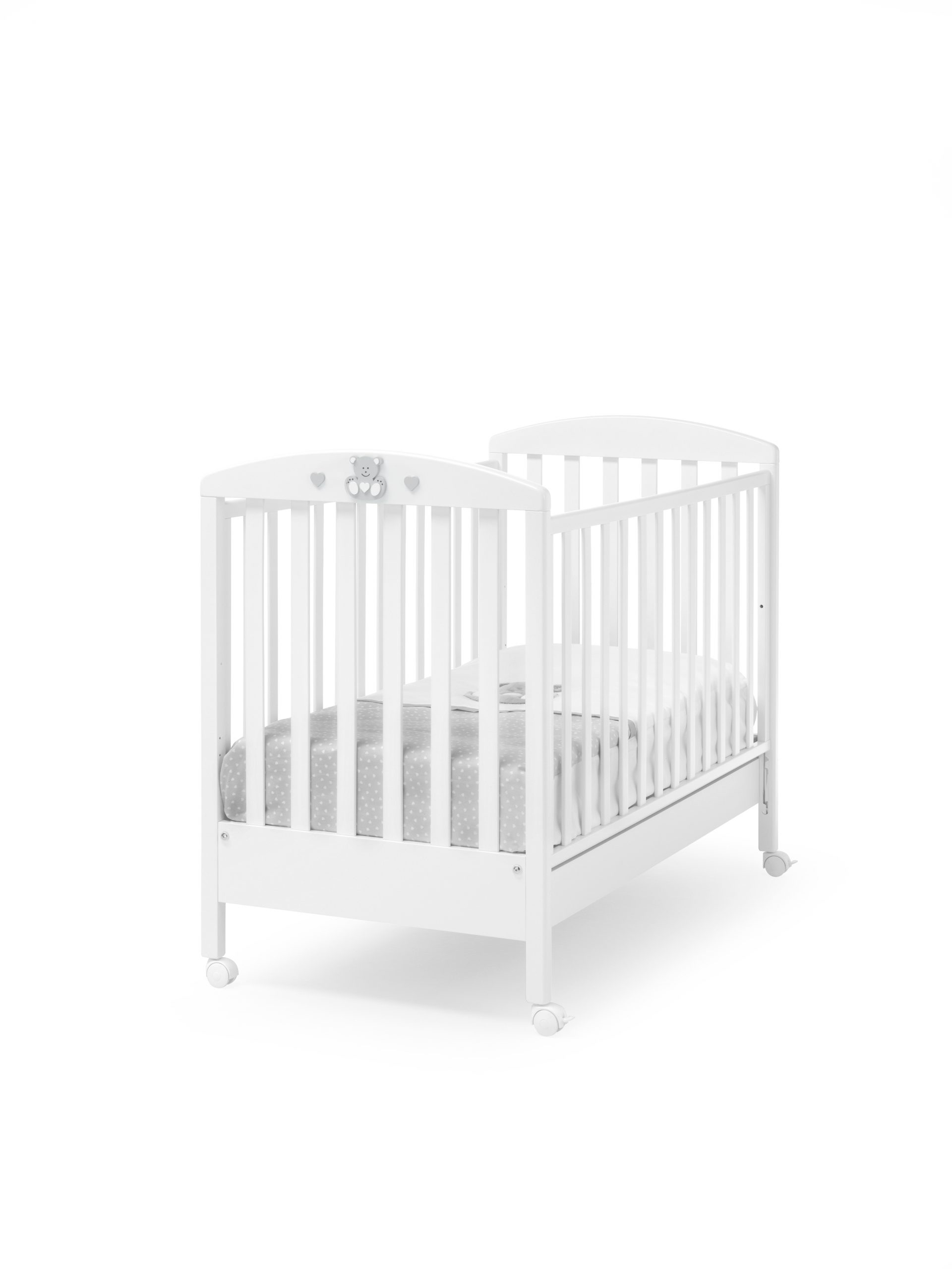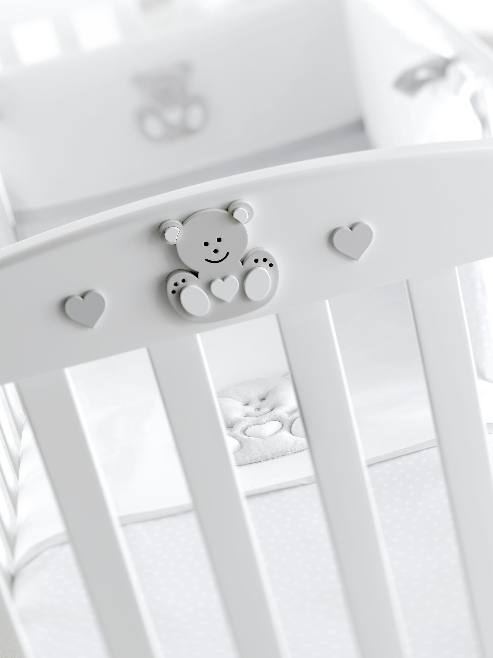 Dětská postýlka Charly s motivem medvídků. Každá postýlka do dětského pokoje má polohovatelný rošt a velmi jednoduché stahování bočnic – snadno zvládnutelné jednou rukou.