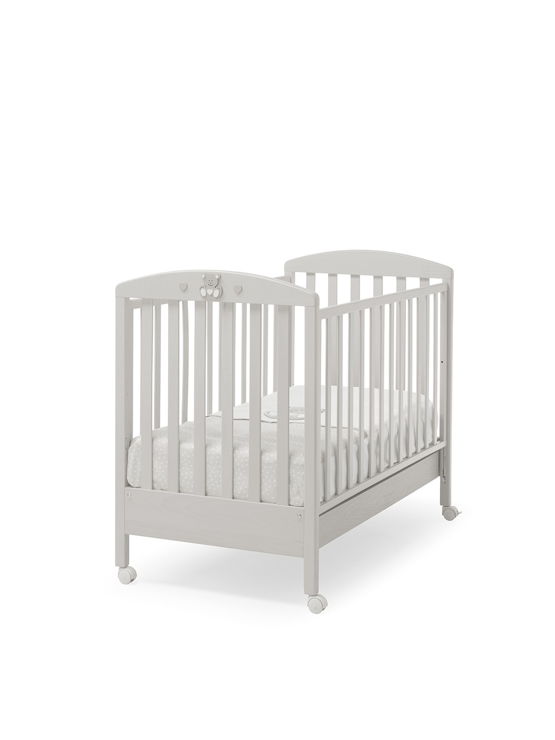 Dětská postýlka Charly s motivem medvídků. Každá postýlka do dětského pokoje má polohovatelný rošt a velmi jednoduché stahování bočnic – snadno zvládnutelné jednou rukou.