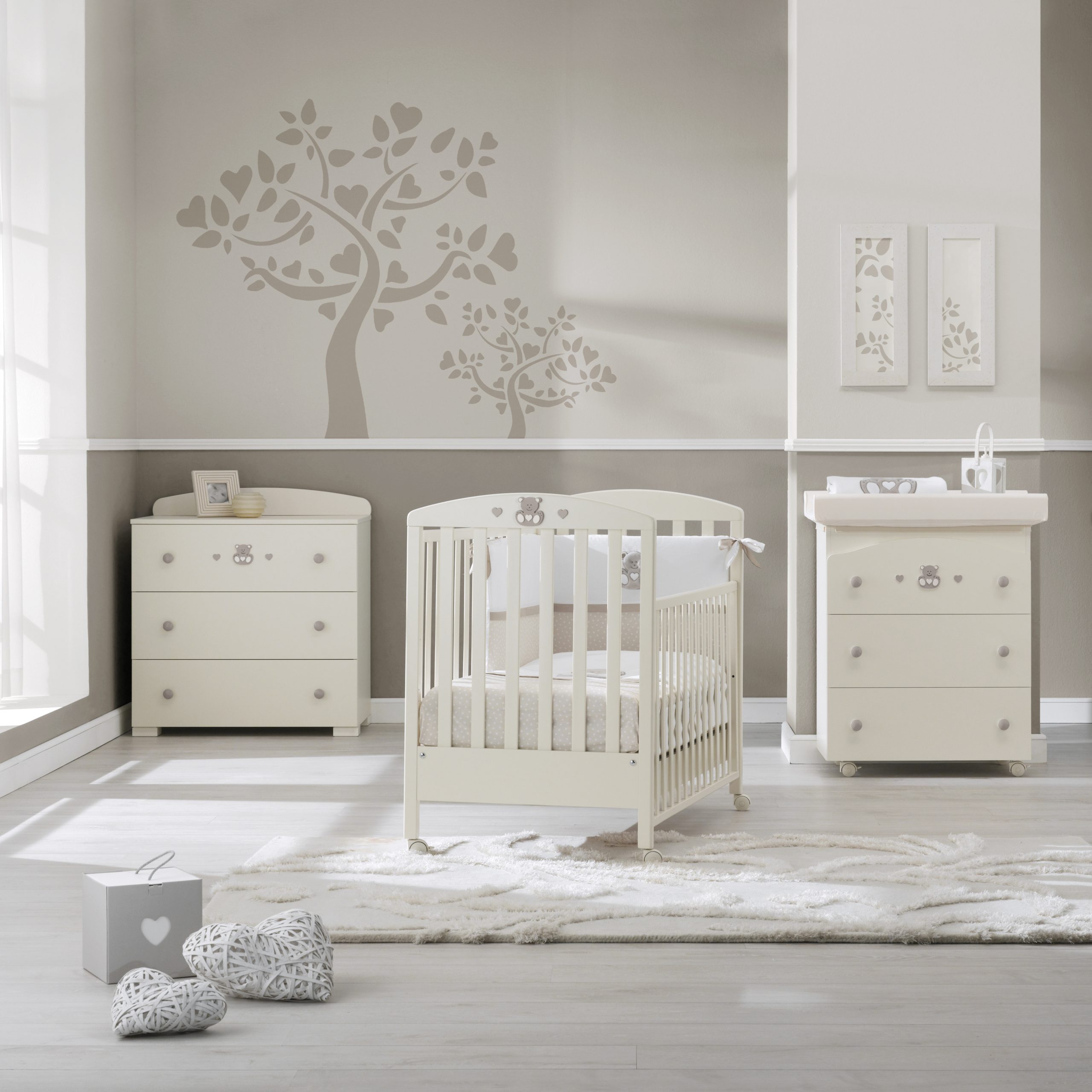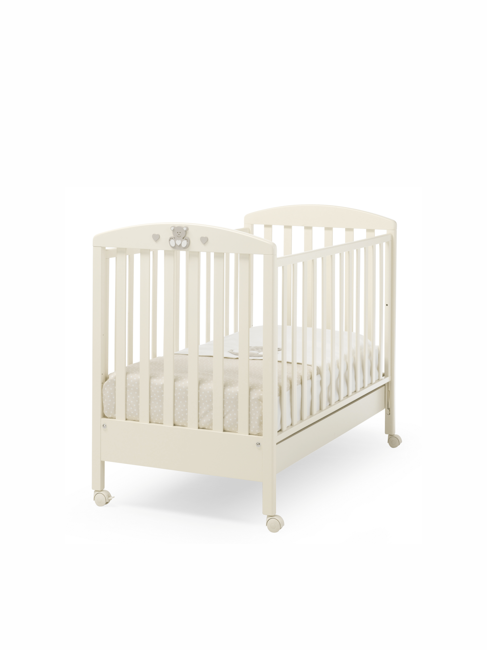 Dětská postýlka Charly s motivem medvídků. Každá postýlka do dětského pokoje má polohovatelný rošt a velmi jednoduché stahování bočnic – snadno zvládnutelné jednou rukou.