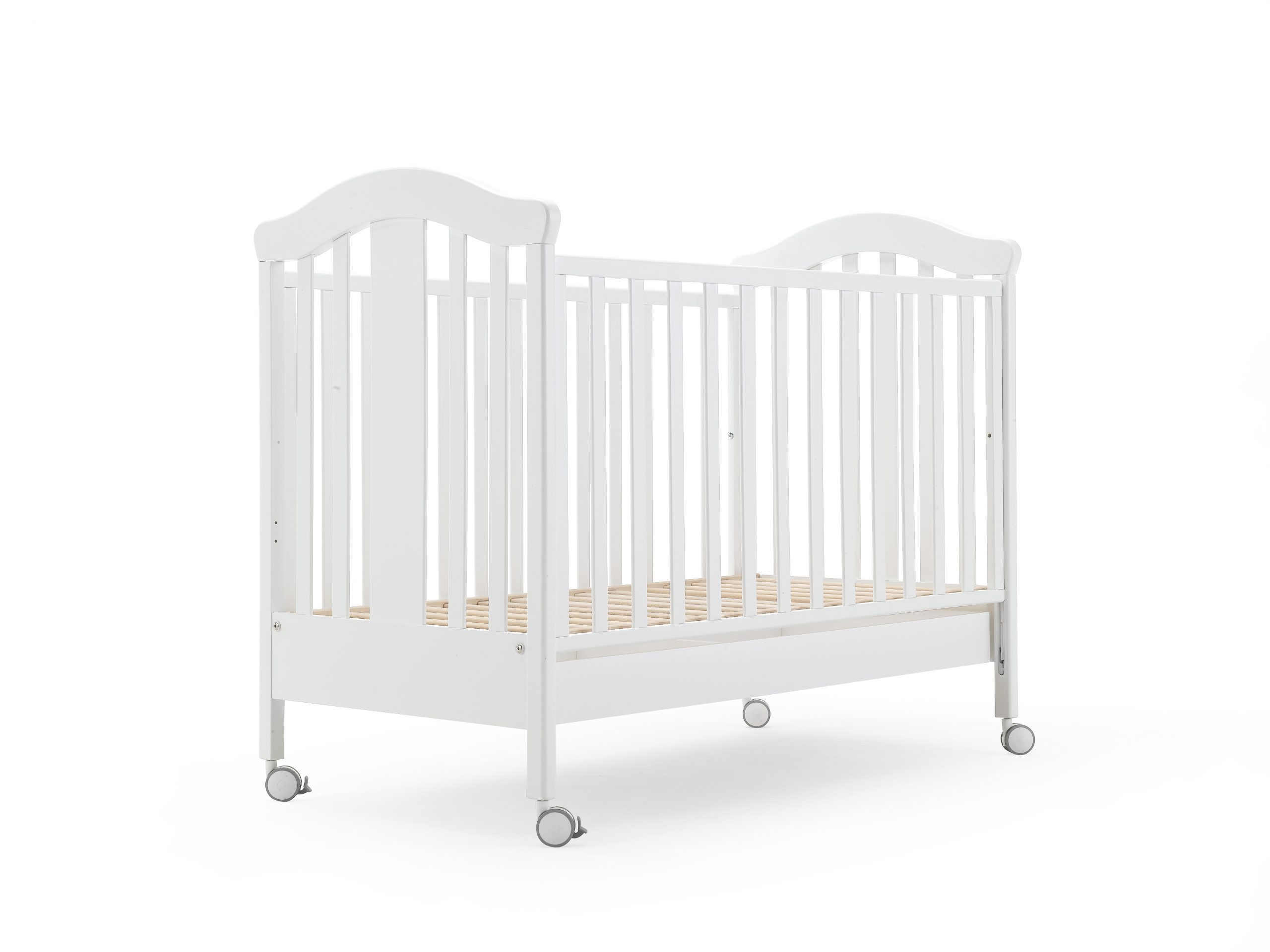 kolečka u postýlky jsou potažená speciální gumou, která na podlaze nezanechává stopy, dvě kolečka je možné zabrzdit