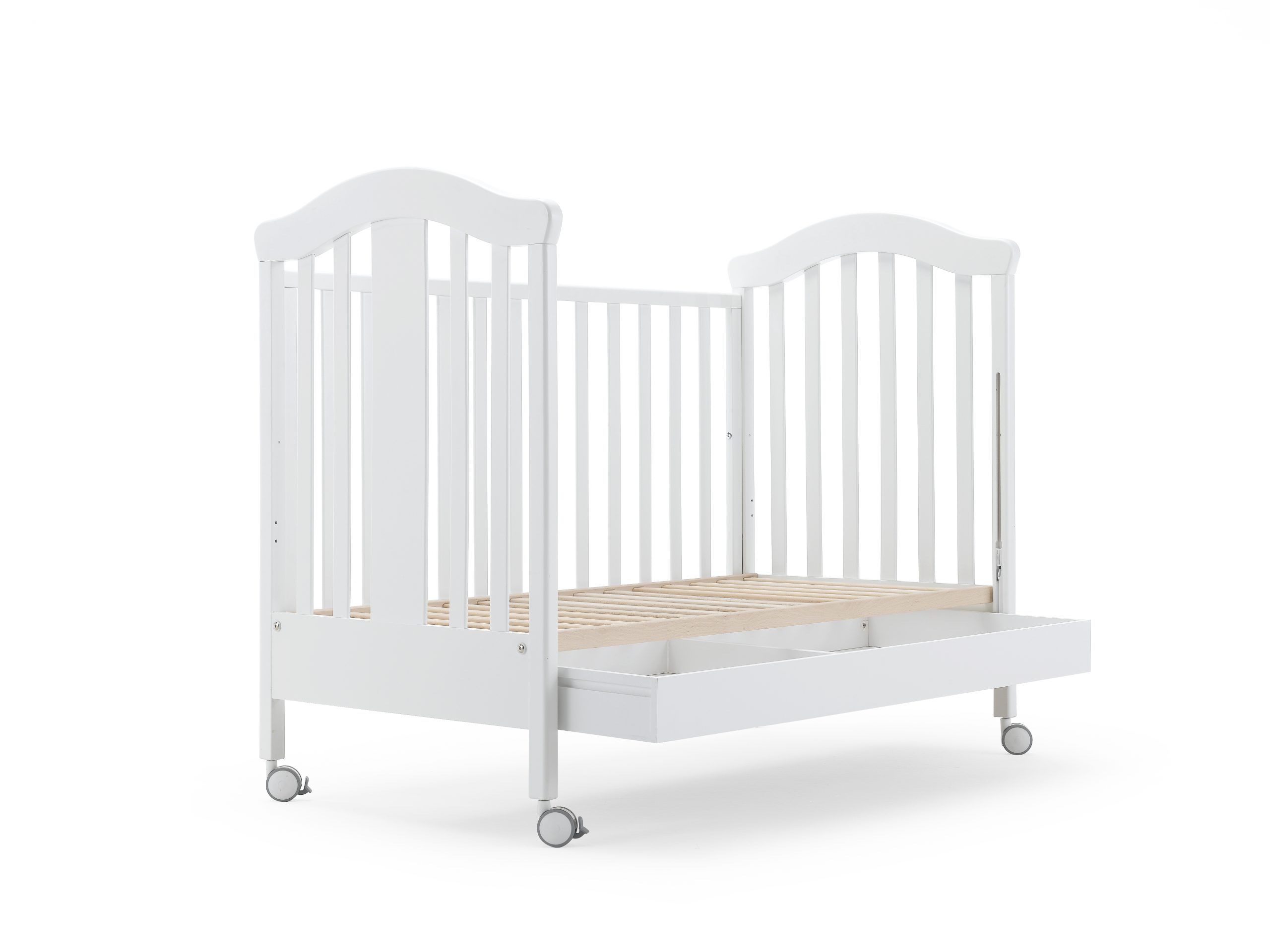ve spodní části postýlky se nachází praktická prostorná zásuvka, vhodná na uložení povlečení, a navíc vysouvatelná z obou stran postýlky